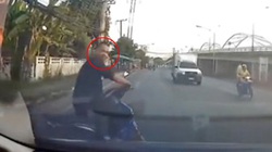 Thấy cô gái mặc váy ngắn đi bộ, một nam thanh niên chạy xe máy đến, áp sát đưa tay sờ vòng 3 và bị nghiệp quật ngã nhào xuống đường.