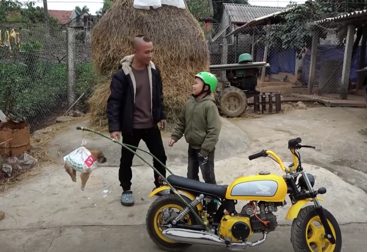 YouTuber Tam Mao bán chó gây phẫn nộ: Treo bé cún lủng lẳng trên xe